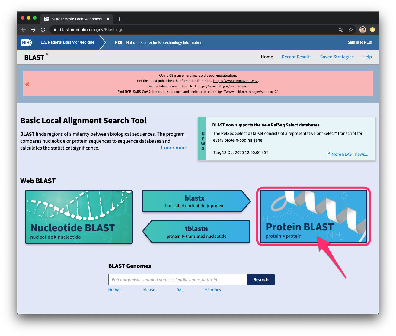まず,protein blastを選択します.